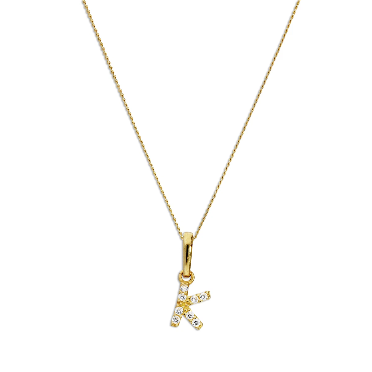Tiny 9ct Gold Alphabet Letter K Pendant Necklace 16 20 Inches Jewellerybox Co Uk